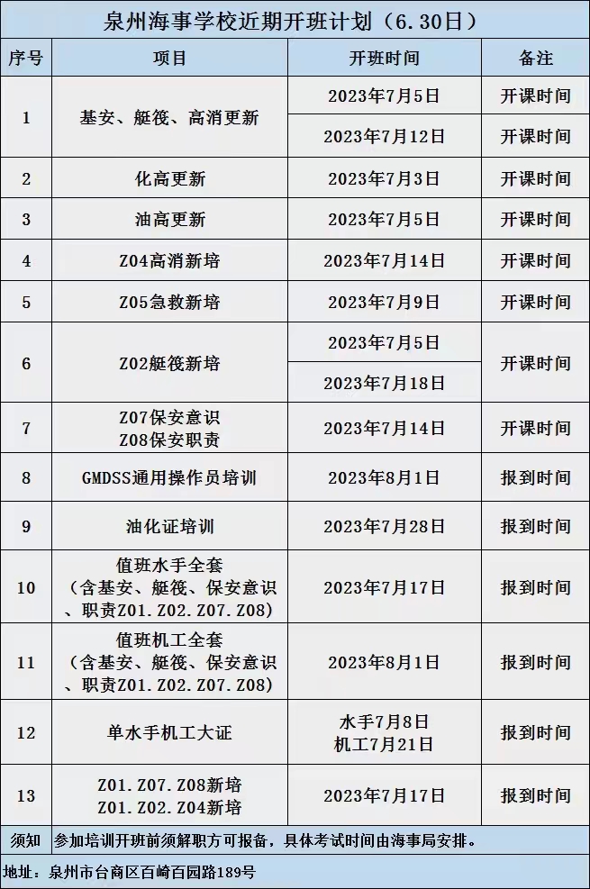 切勿在河北海事局申报办证,11规则可报,04规则不接受报名,课程计划:5月23号理论线上课一天,5月25号到天津市实操仅需半天,请不要提前购买车票,进群后以学校通知为准。